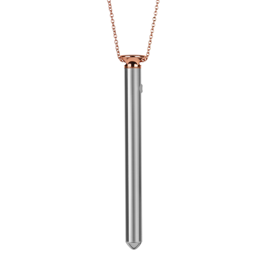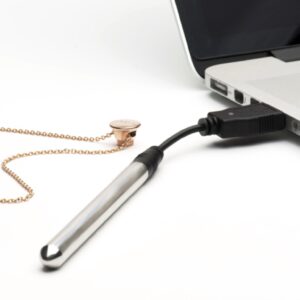 Vesper is the world’s first USB rechargeable, multi-speed vibrator necklace. The Vesper vibrator has 4 speeds – low,medium, high, and pulsing. Its clean, sleek aesthetics make for both a subtle addition to your outfit and a standalone statement piece. USB cable and storage pouch included. Splash-proof. Not for insertion. External use only