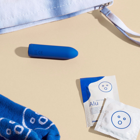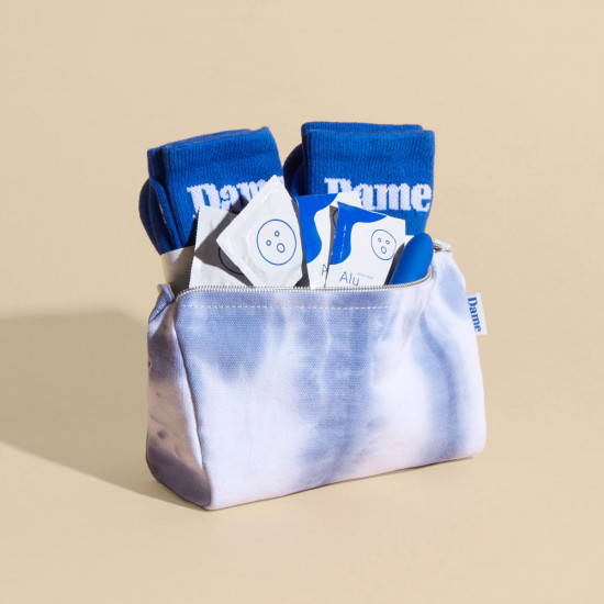 Duo is an all-in-one kit for couples looking to bring some cozy to their toesies. It features Zee, a rechargeable vibrator, Alu lube, an aloe-based lubricant, two condoms, and two pairs of Dame Socks. And it all comes together in a washable storage pouch, for connecting at home or on the go.