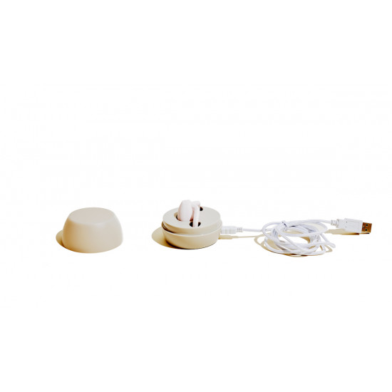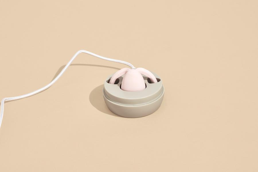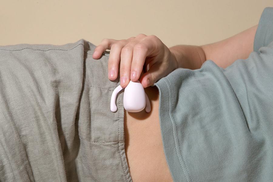 Hands-off, turned-on.  Eva is a wearable clitoral vibrator for pleasure that stays in place during sex.  With flexible wings it tucks under the labia majora while Eva sits atop the clitoris delivering clitoral stimulation during penetrative sex without getting in the way.  When worn by the woman, it leaves her hands free to support her weight, move around, and focus on intimacy.