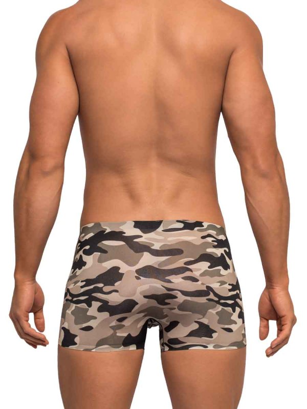 Slip into this men’s camo trunk; and you’ll experience comfort at its best. Our Commando Mini Short is made of lightweight seamless fabric. It’s also tagless, which really increases its comfortability. If satisfying comfort isn’t enough. We promise, you will look just as good as you feel. This super-stylish men’s mini short has a low-rise waist, decoratively stitched, contoured pouch and a bonded-seamless waistband.