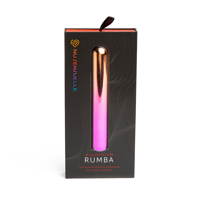 Experience a fusion of intense vibrations and gentle warmth with this versatile bullet. The Rumba’s cylindrical physique boasts two proprietary 60SX Amp motors, and the ombre aluminium finish ensures its intensity and heating element withstand dampening, allowing for a heavenly sensory experience. The Rumba is the first on the market to combine aluminum and heat, which can be independently operated from the product’s vibration mode—allowing for an additional layer of experiential customization.