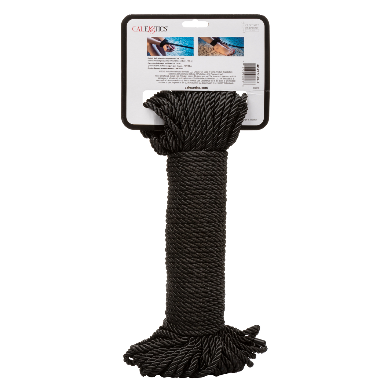 Give into to your wild side and get creative with CalExotics Scandal® Rope. The award-winning Scandal® collection brings you 32, 98, and 164 feet of sensationally silky rope that lets you dive deep into endlessly creative restraint play and bondage sex. Give yourself over to enhanced pleasure and elevated arousal with each wrap of this slender, multi-talented rope. Use to bind wrists, wrap around ankles, create naughty décor or explore uniquely sexy outfits for kinky and fun fetish sex.